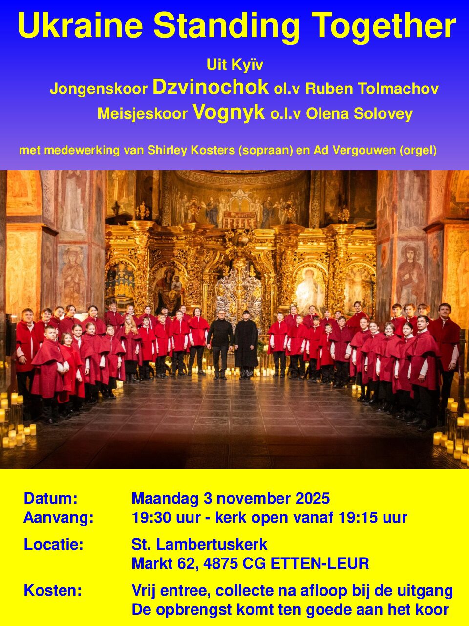 Steeds meer parochies in ons bisdom zijn op weg om missionair te worden: gemeenschappen waar mensen het geloof (her)ontdekken en samen groeien als leerlingen van Jezus. Dat is een weg van hoop, vreu Op maandag 3 november geven het uit Kiev (Oekraine) afkomstige jongenskoor Dzvinochok en meisjeskoor Vognyk in het kader van hun jaarlijkse tournee door ons land om 19.30 uur een concert in de H.Lambertuskerk.